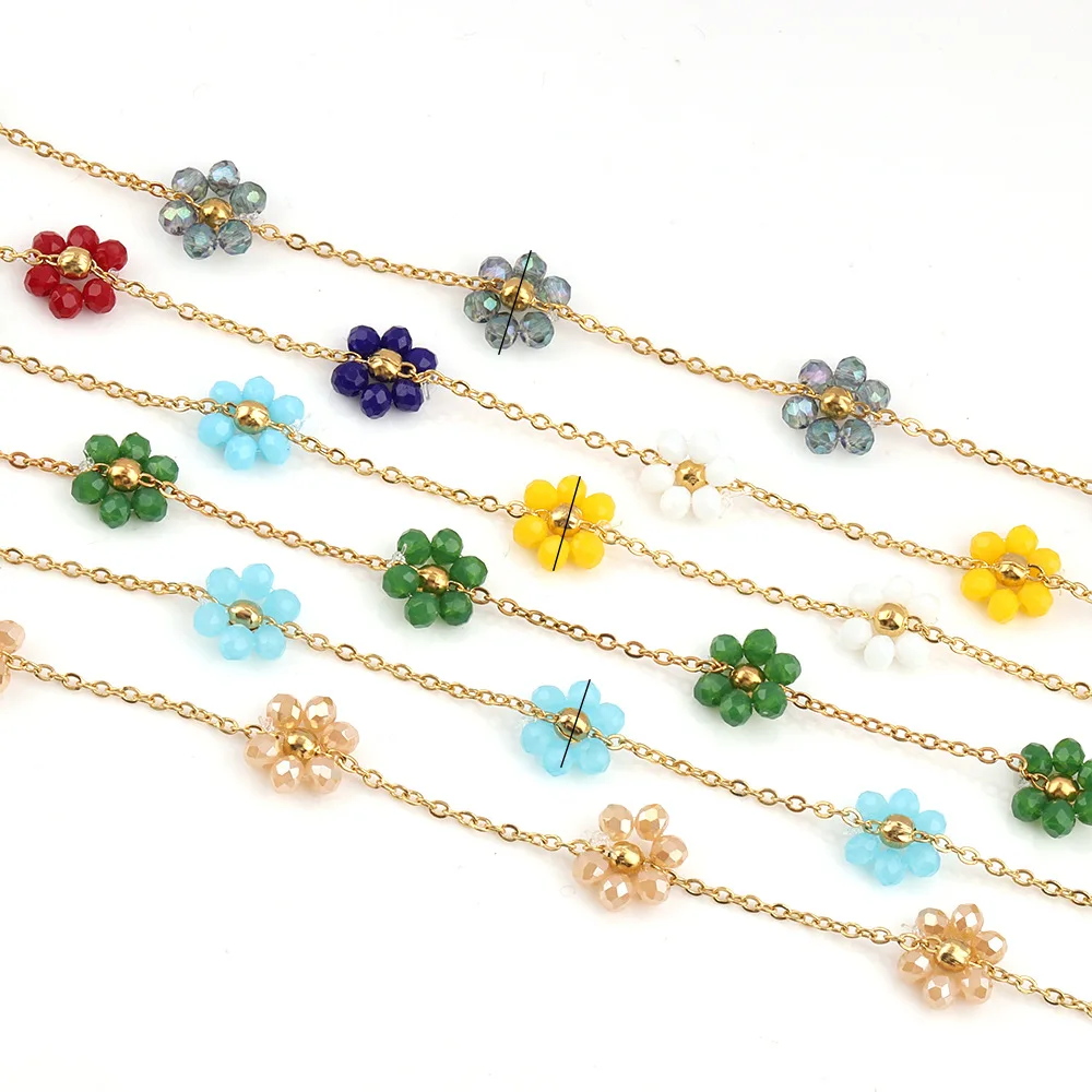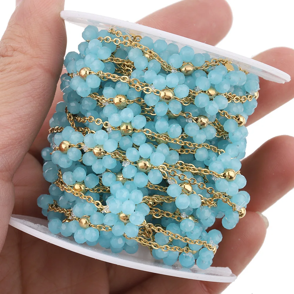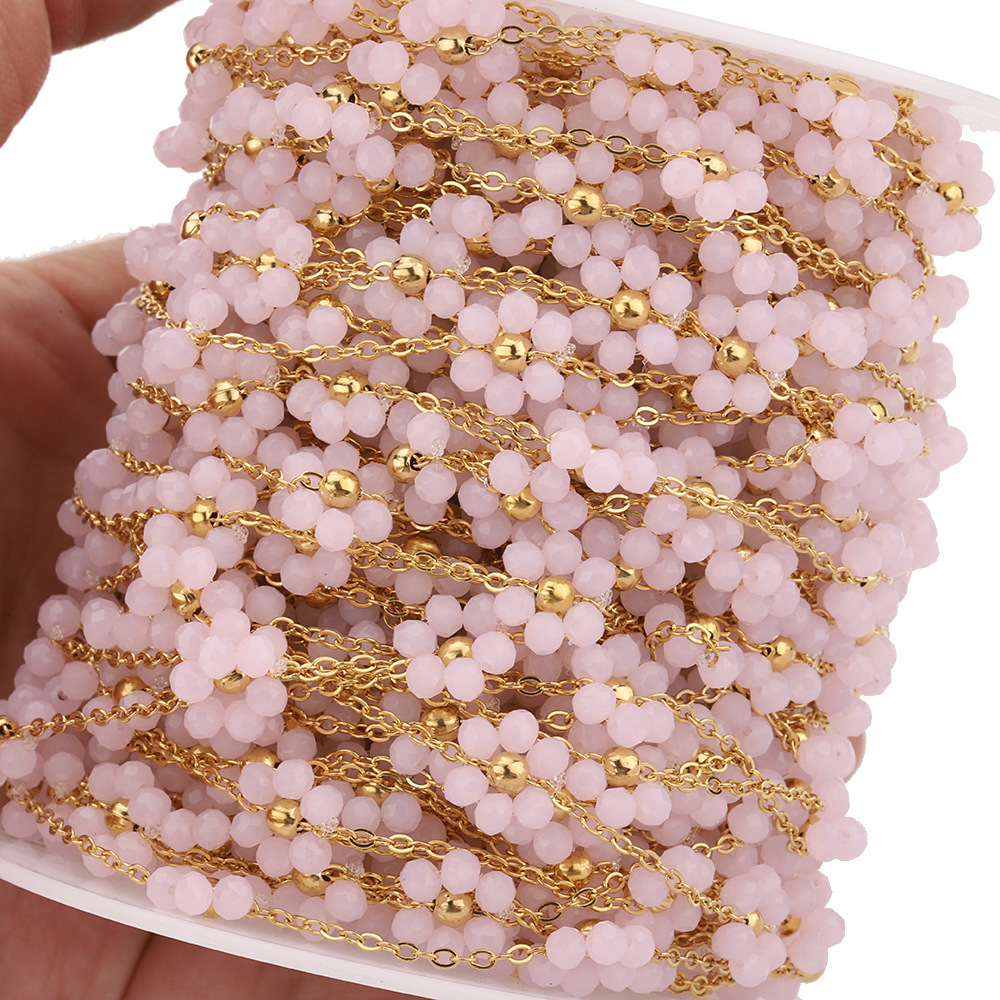 18K Goldplated Stainless Steel Flower Crystal Natural Stone Beads Chains for Necklace Bracelet Jewelry Making DIY Wholes