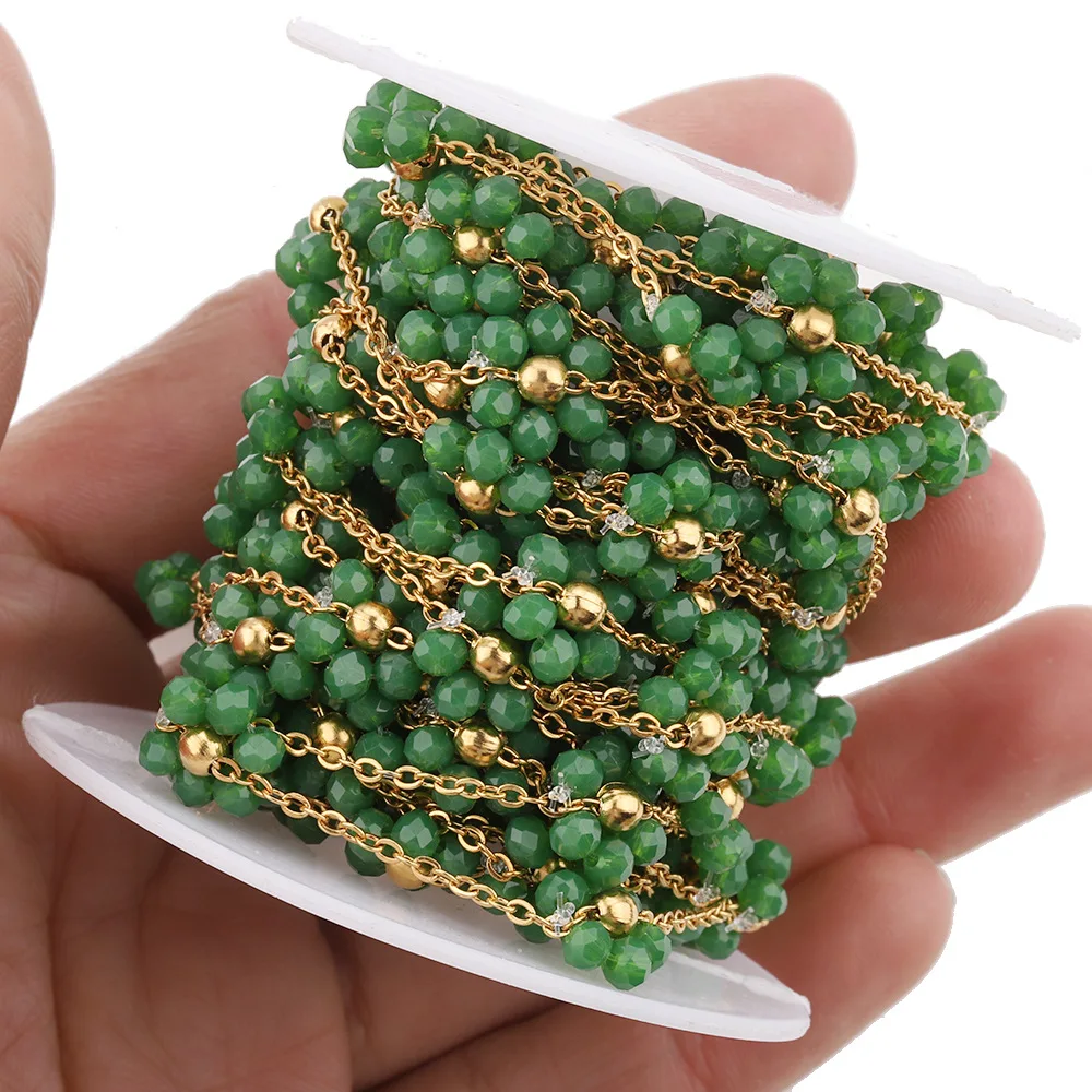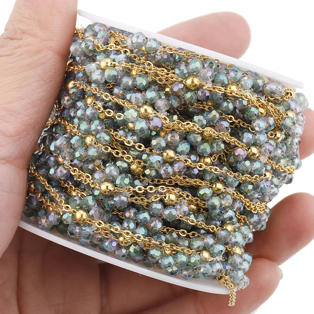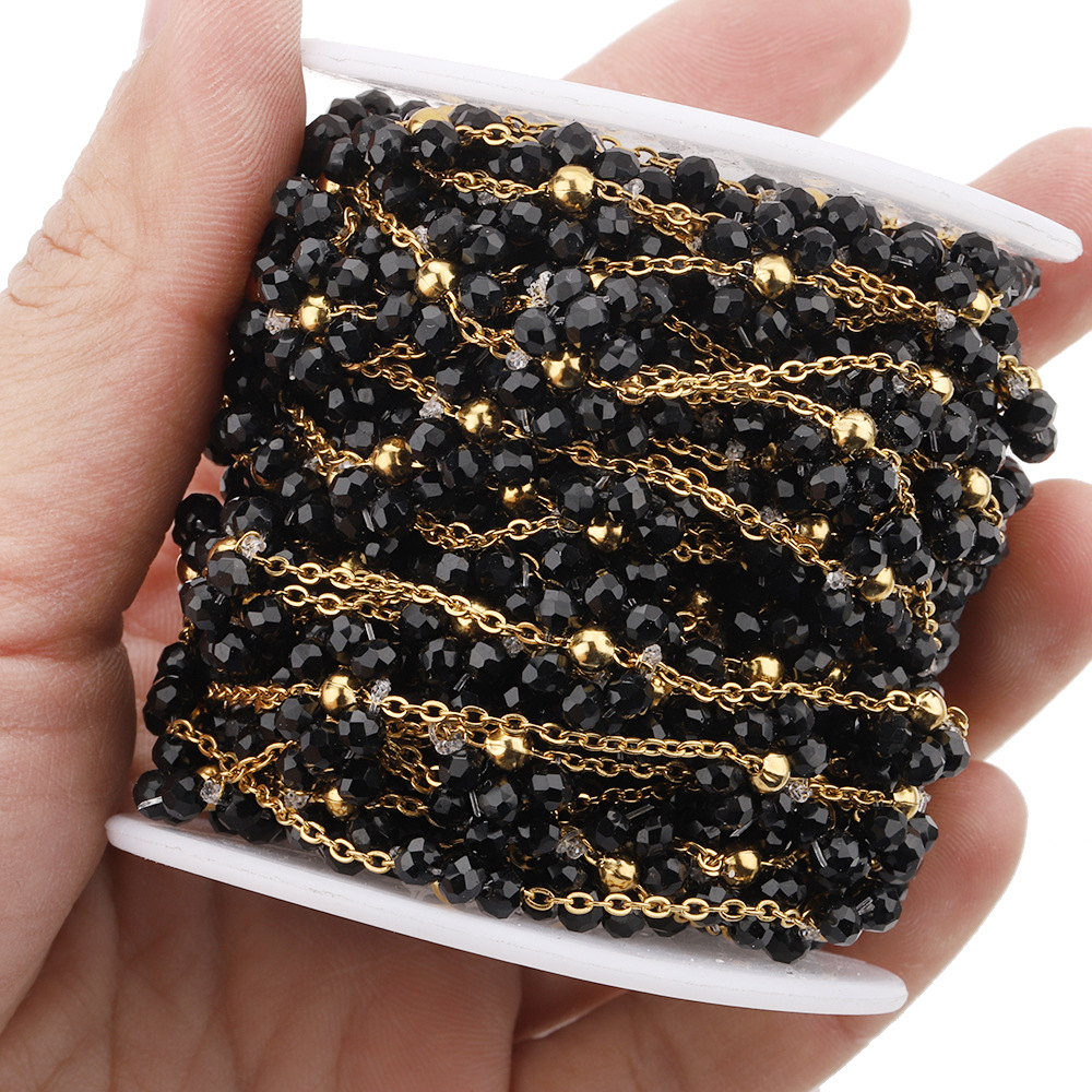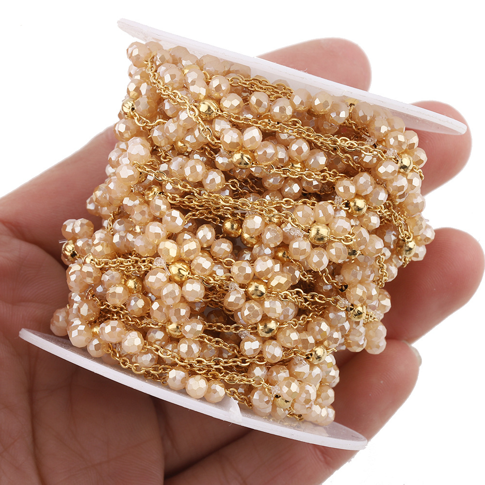 18K Goldplated Stainless Steel Flower Crystal Natural Stone Beads Chains for Necklace Bracelet Jewelry Making DIY Wholes