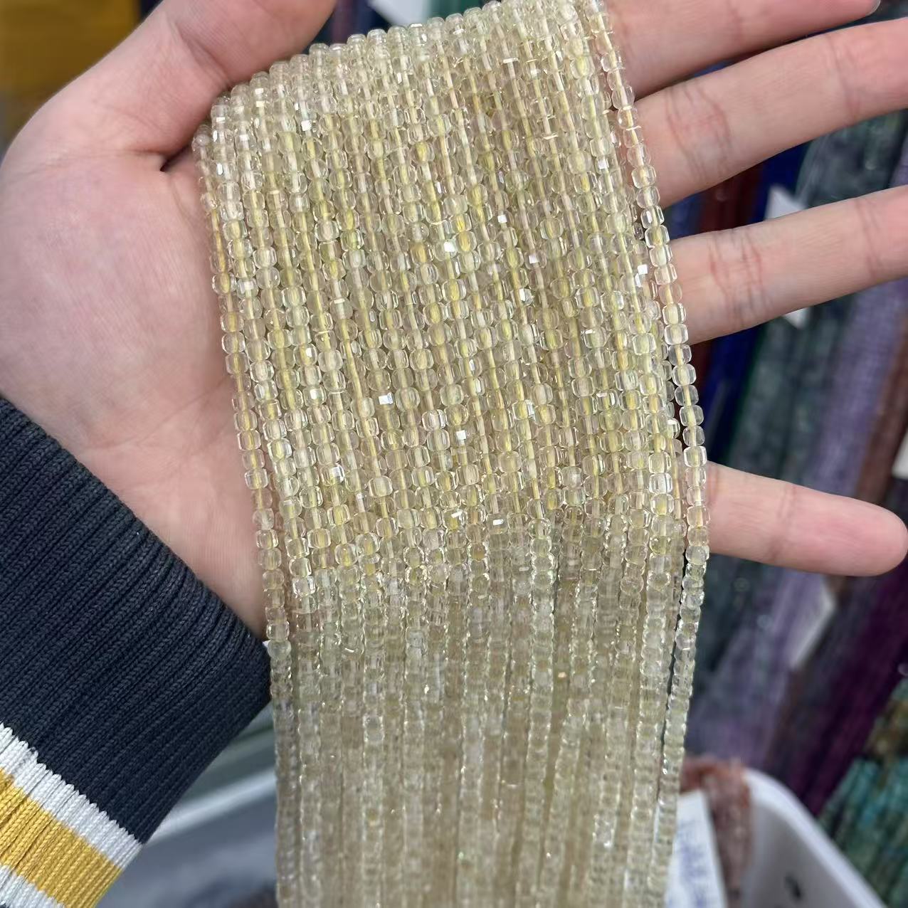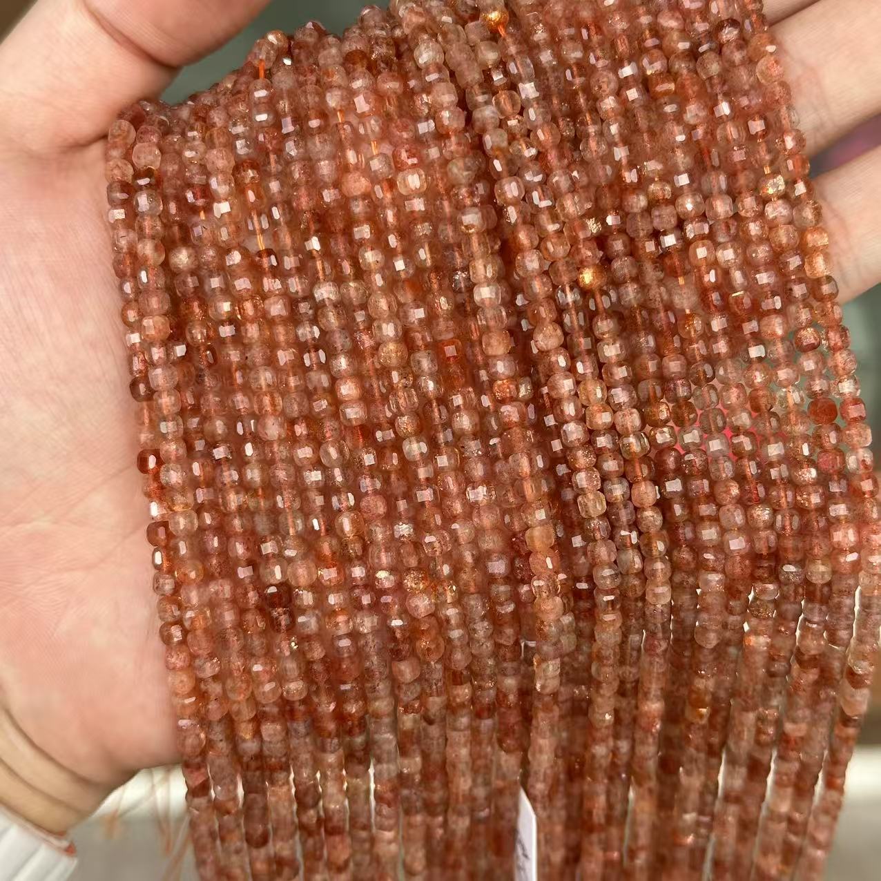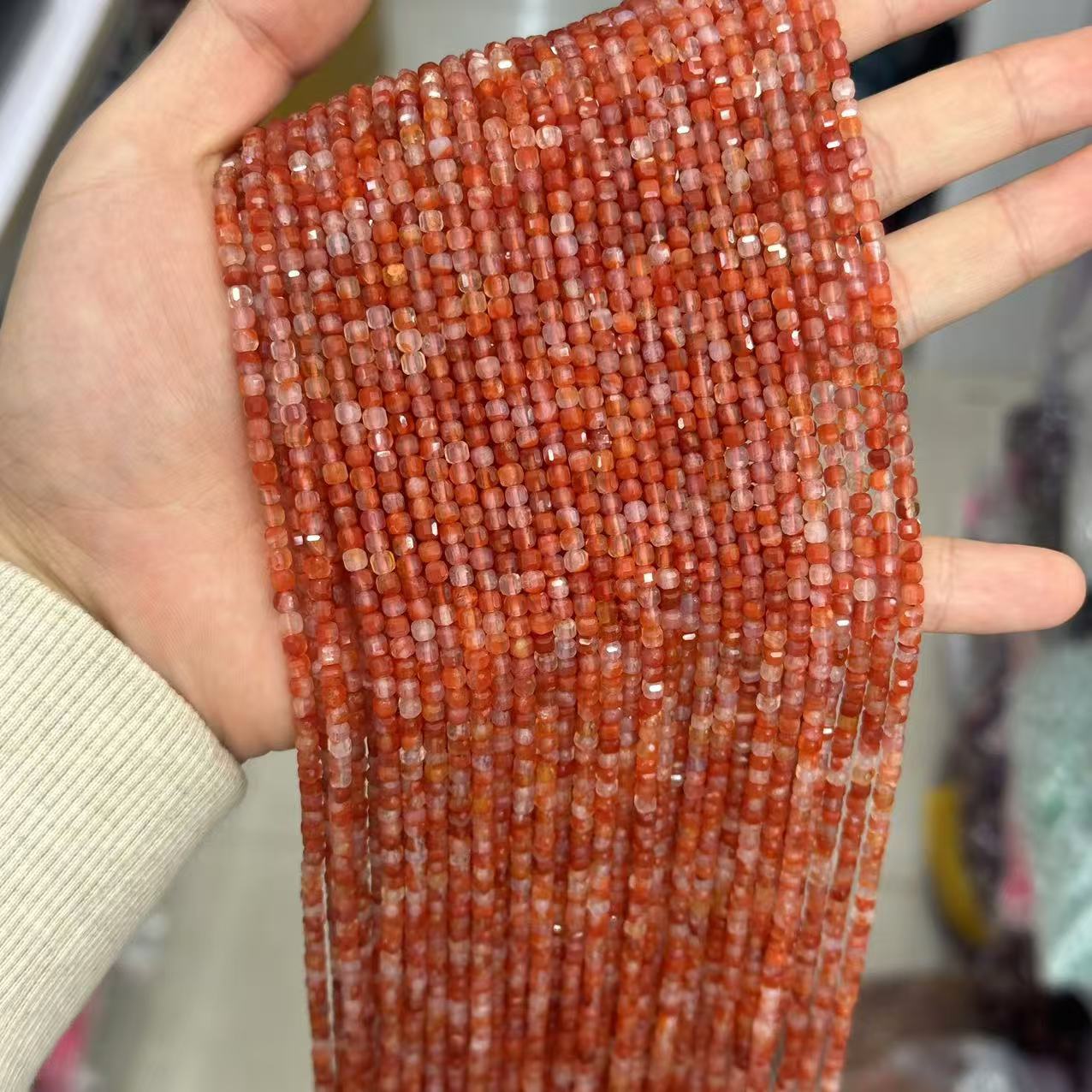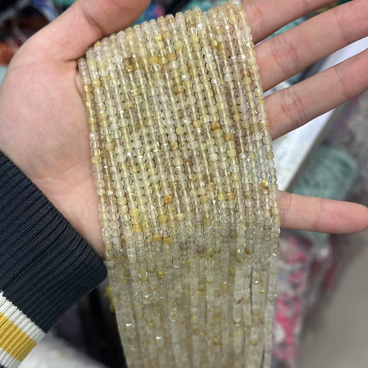 3mm Citrine Crystals Small Faceted Cube Dice Square Beads Ruby Gemstone Healing Stone Bead for DIY Jewelry Making Full Strand