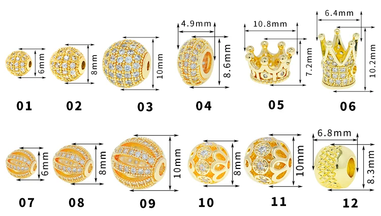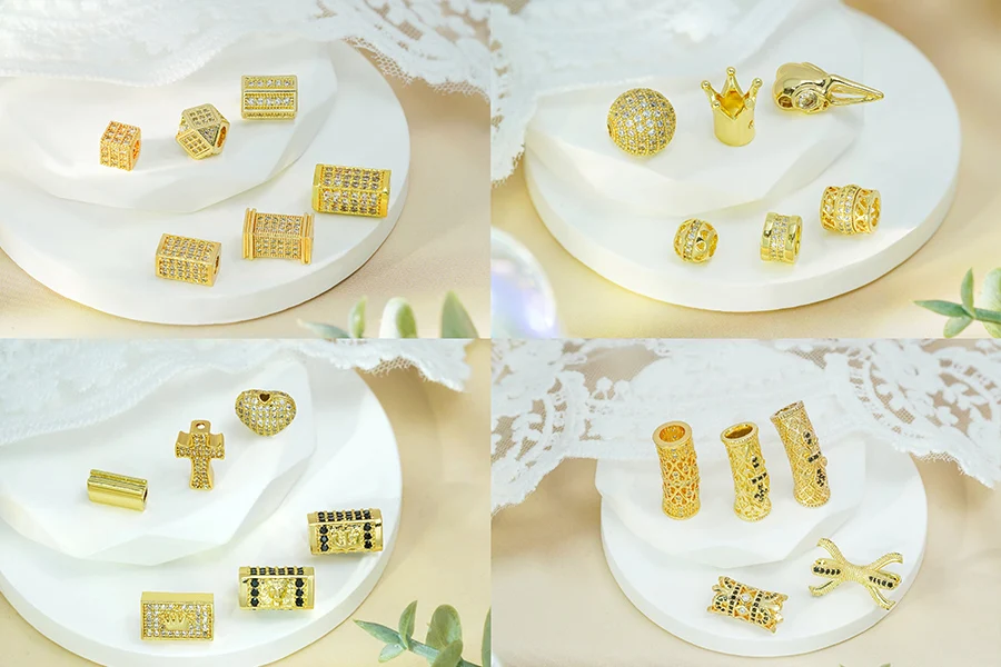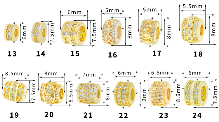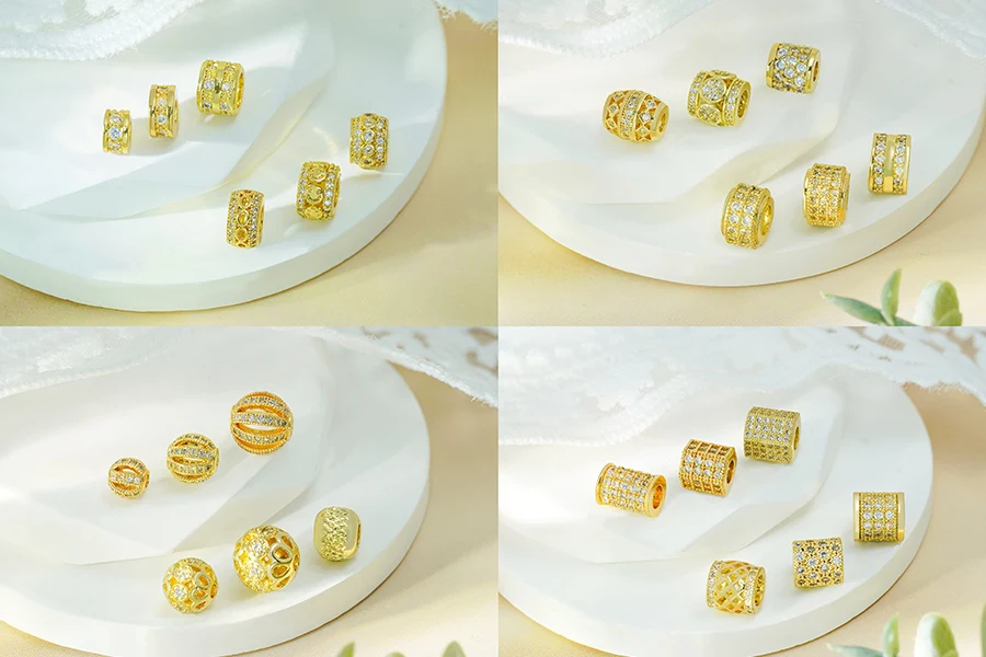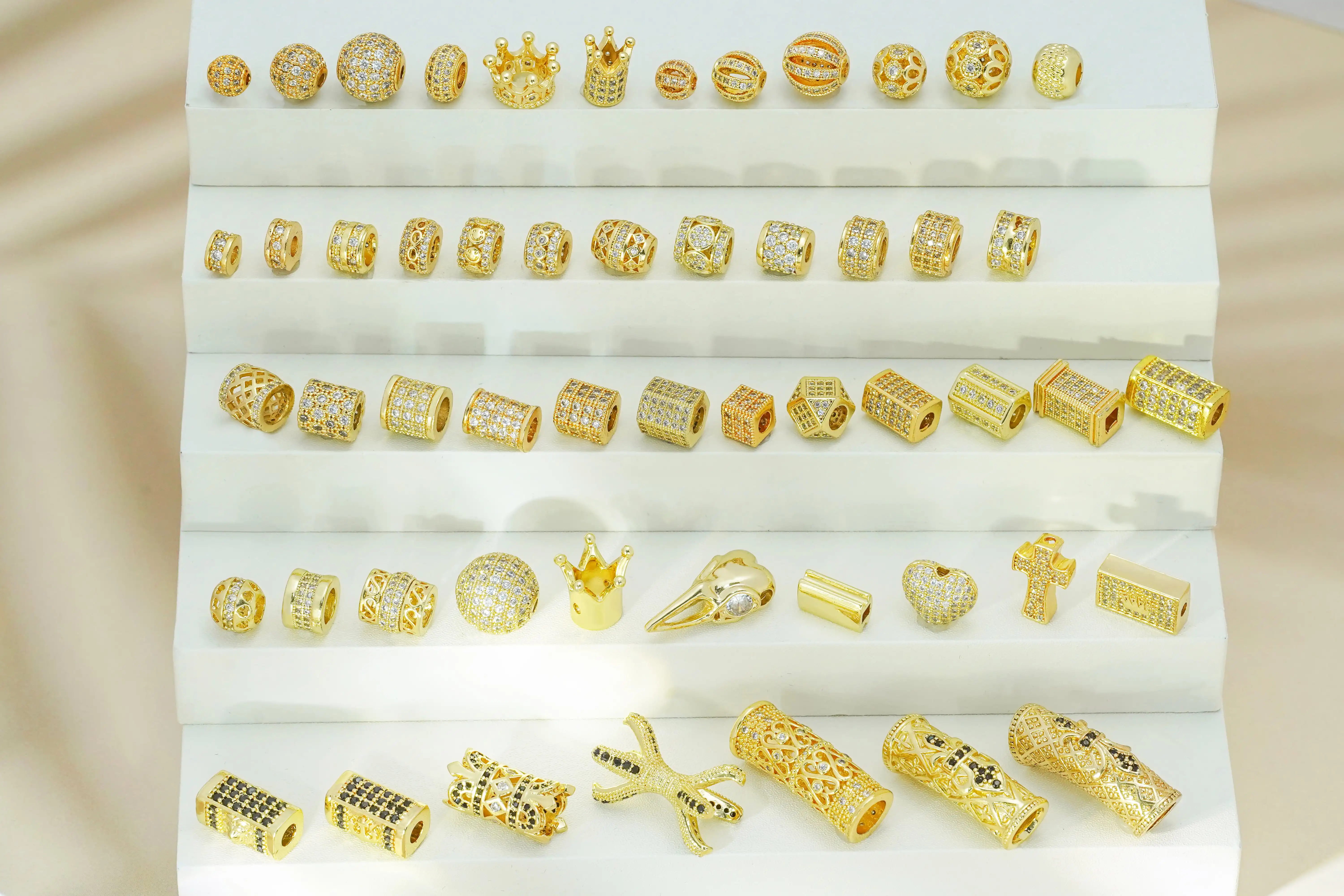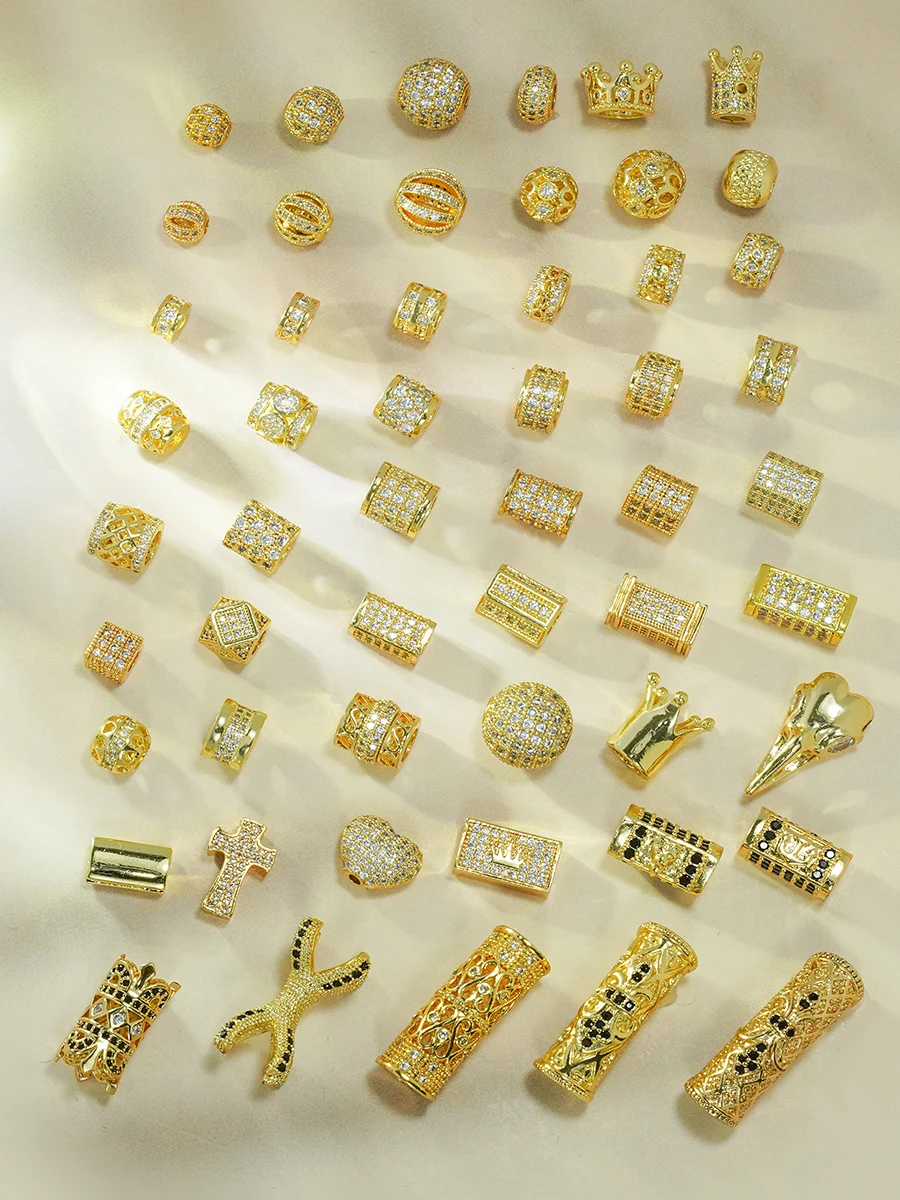 Fashion Jewelry CZ Beads Cubic Zirconia 18K Gold Plated Beads Connector Spacers Zircon Gemstone Diy Beads for Jewelry Making Kit