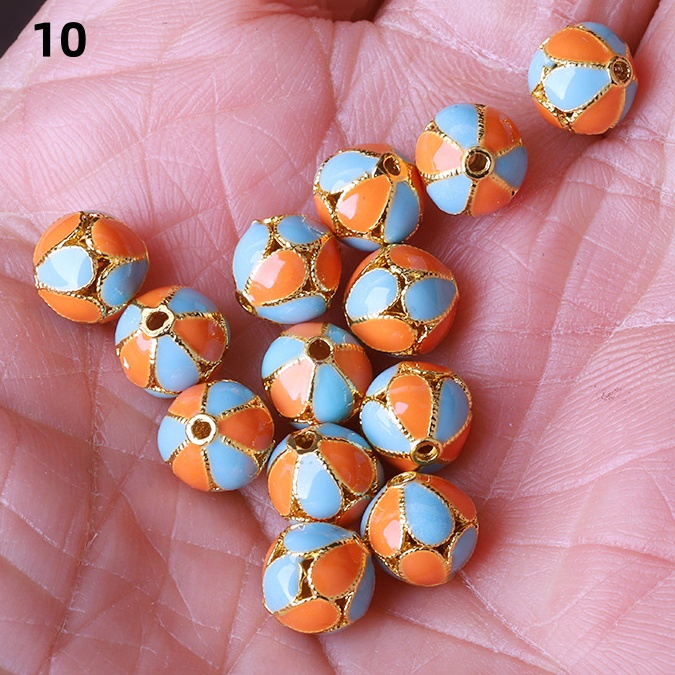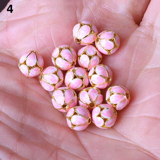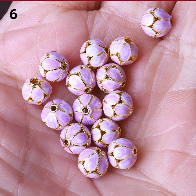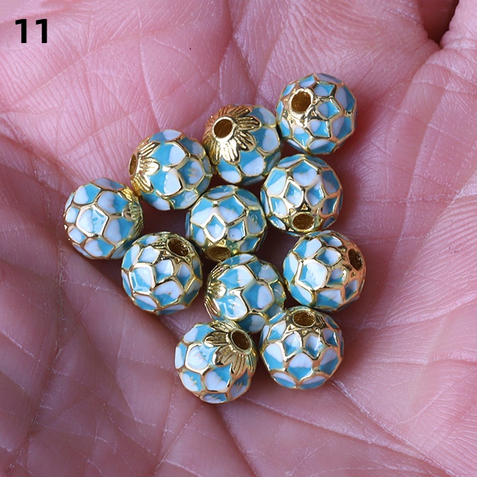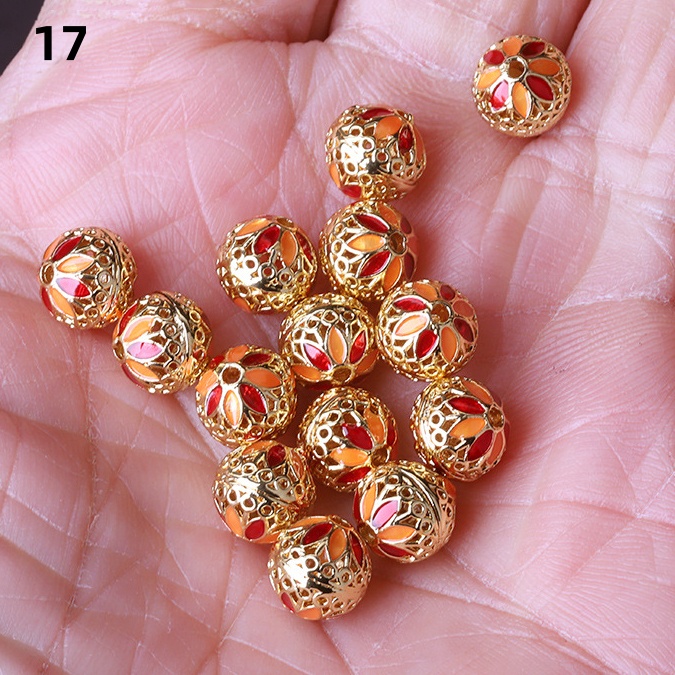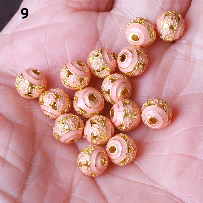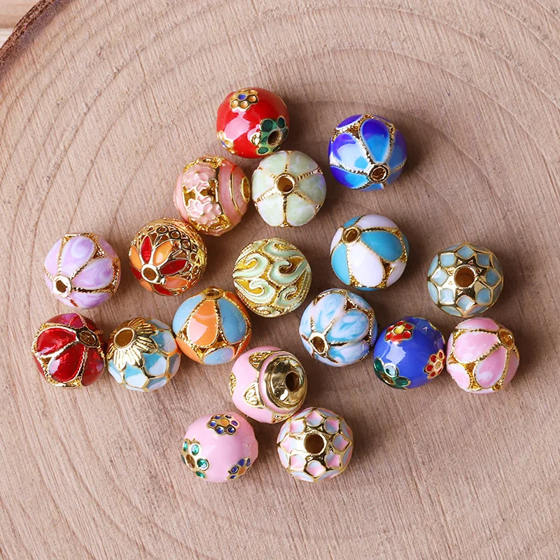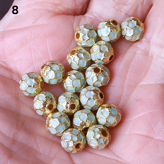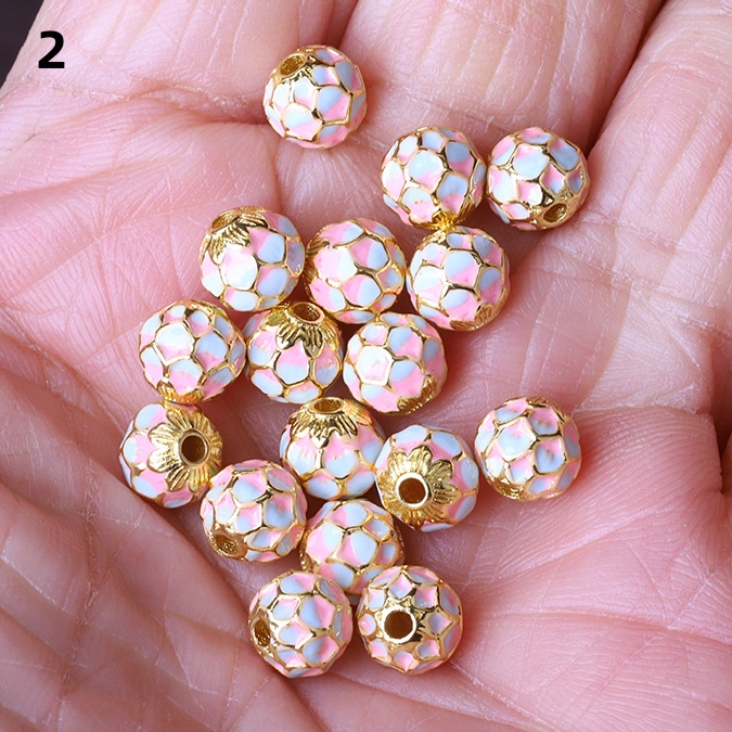 Hollow Round Flower Pattern Cloisonne Beads 8mm Gold Enamel Matte Brass Spacer Beads for Jewelry Making Findings