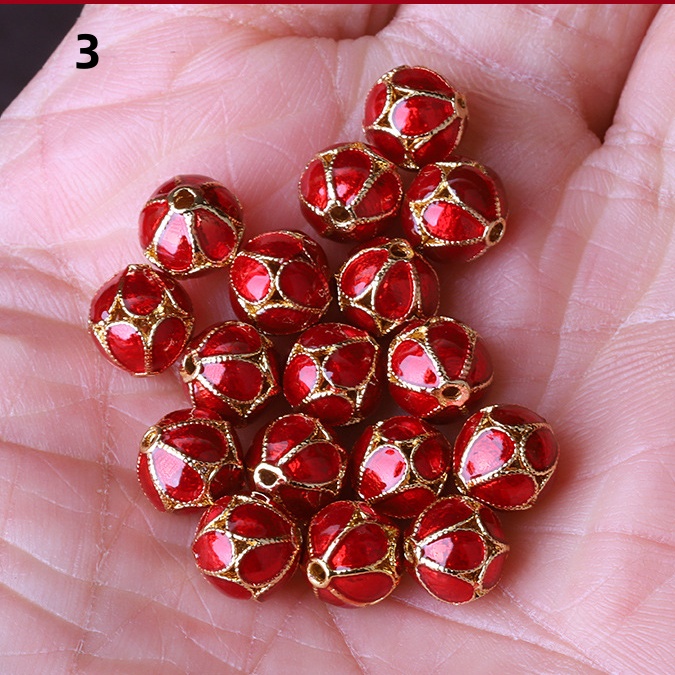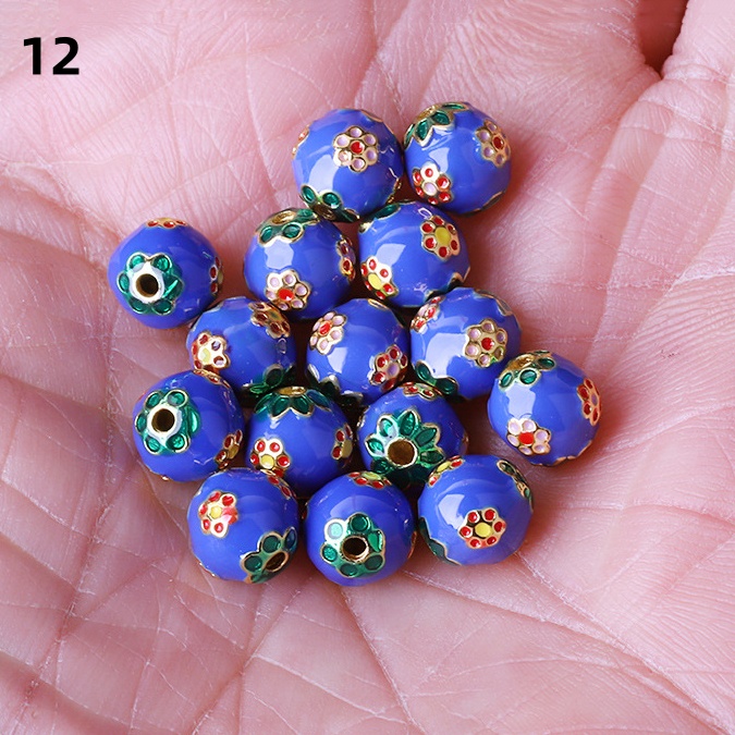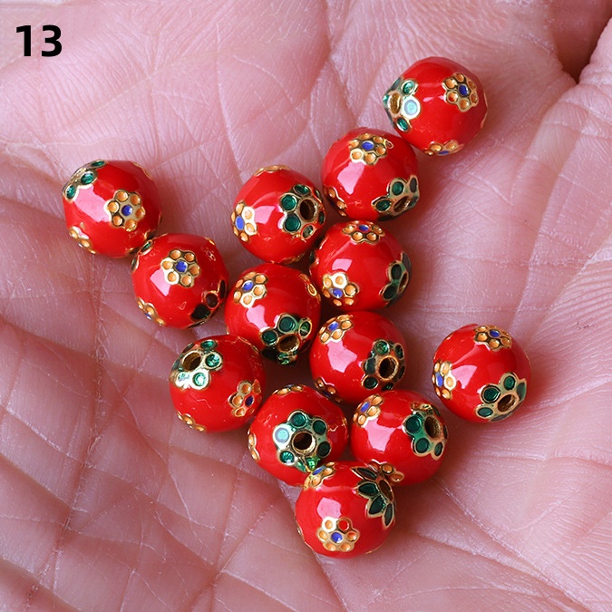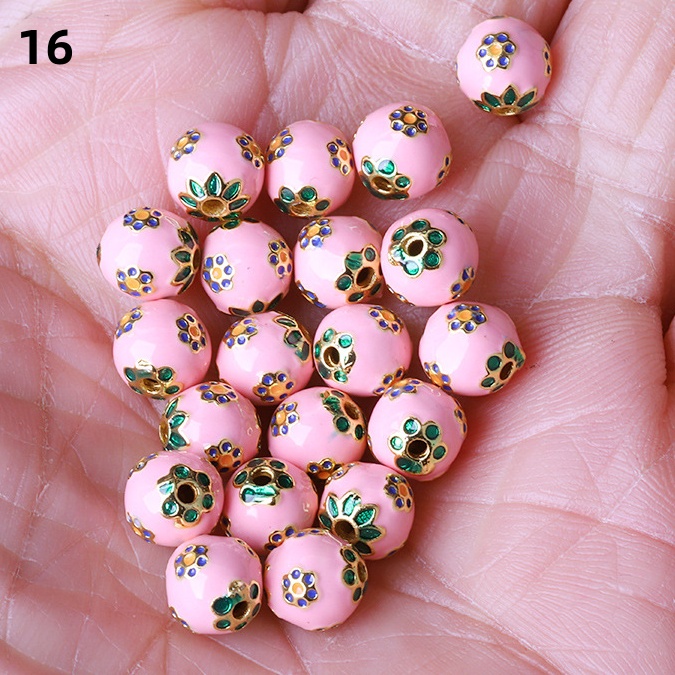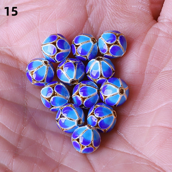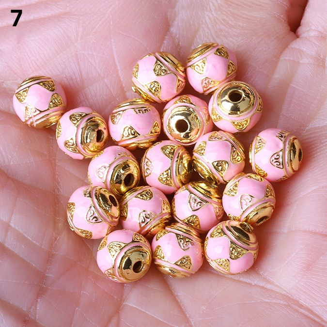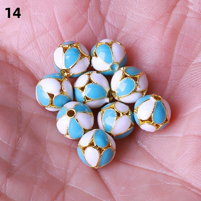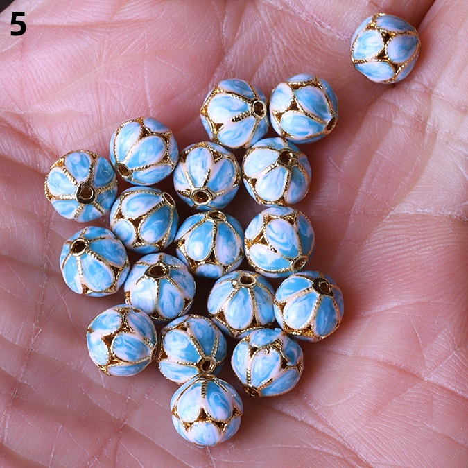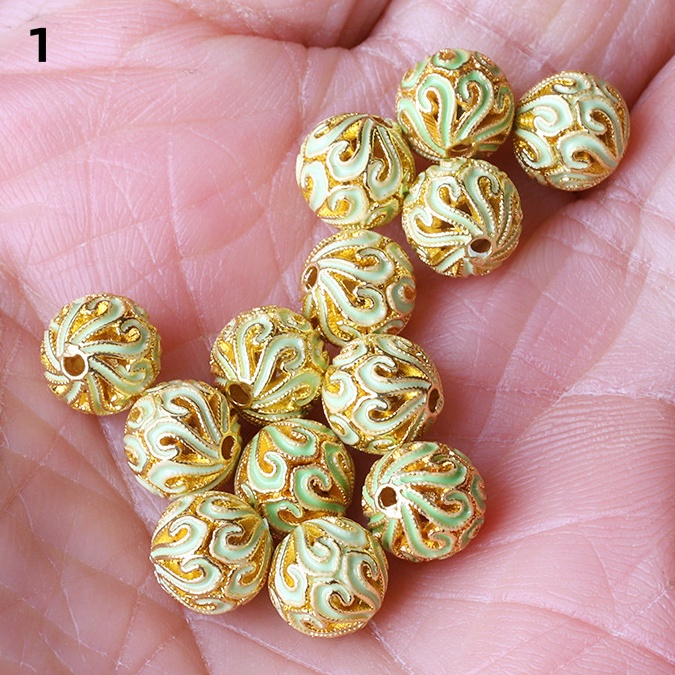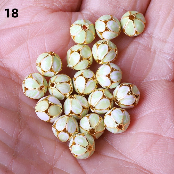 Hollow Round Flower Pattern Cloisonne Beads 8mm Gold Enamel Matte Brass Spacer Beads for Jewelry Making Findings