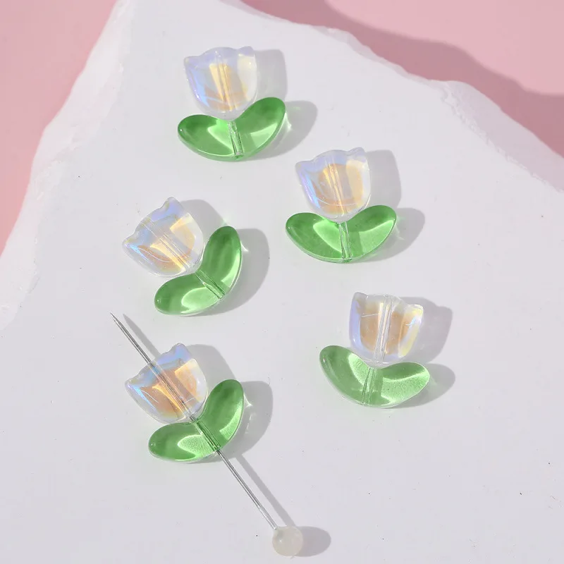 Loose Beads Wholesale Exquisite Gradient Tulip Glass Beads Handmade DIY Bracelet Necklace Jewelry Accessories