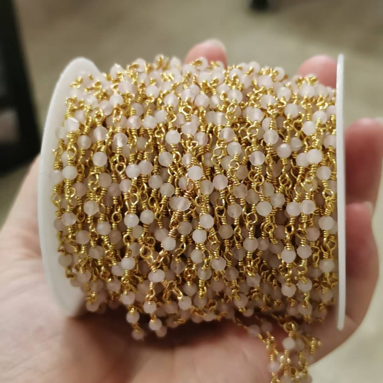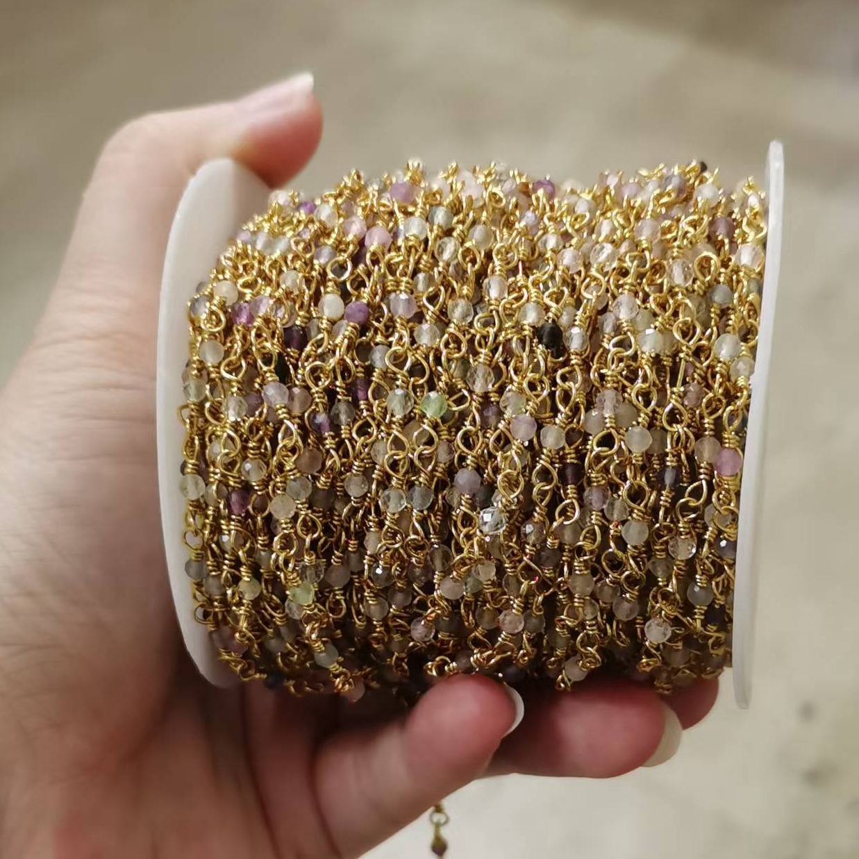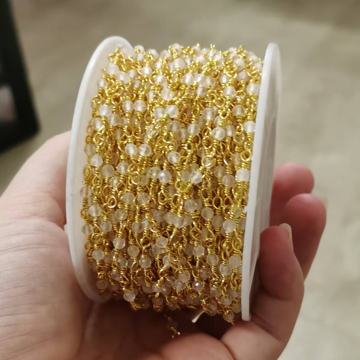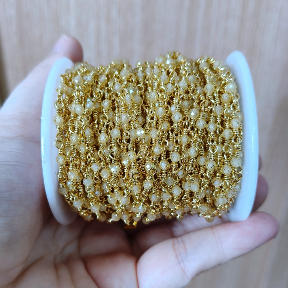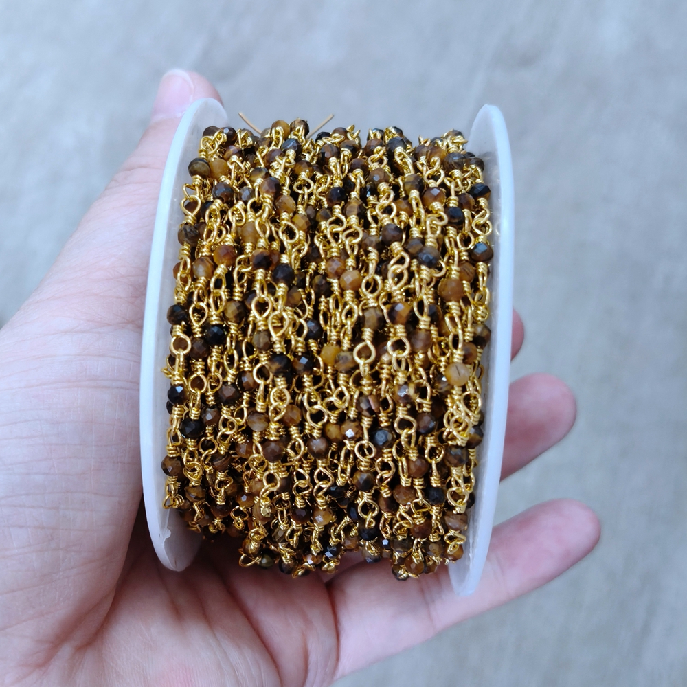Top Selling Natural Gemstone Beaded Gold Plated Jewelry Making Round Shape Faceted Bead Rosary Chain DIY Necklace Jewelry Making