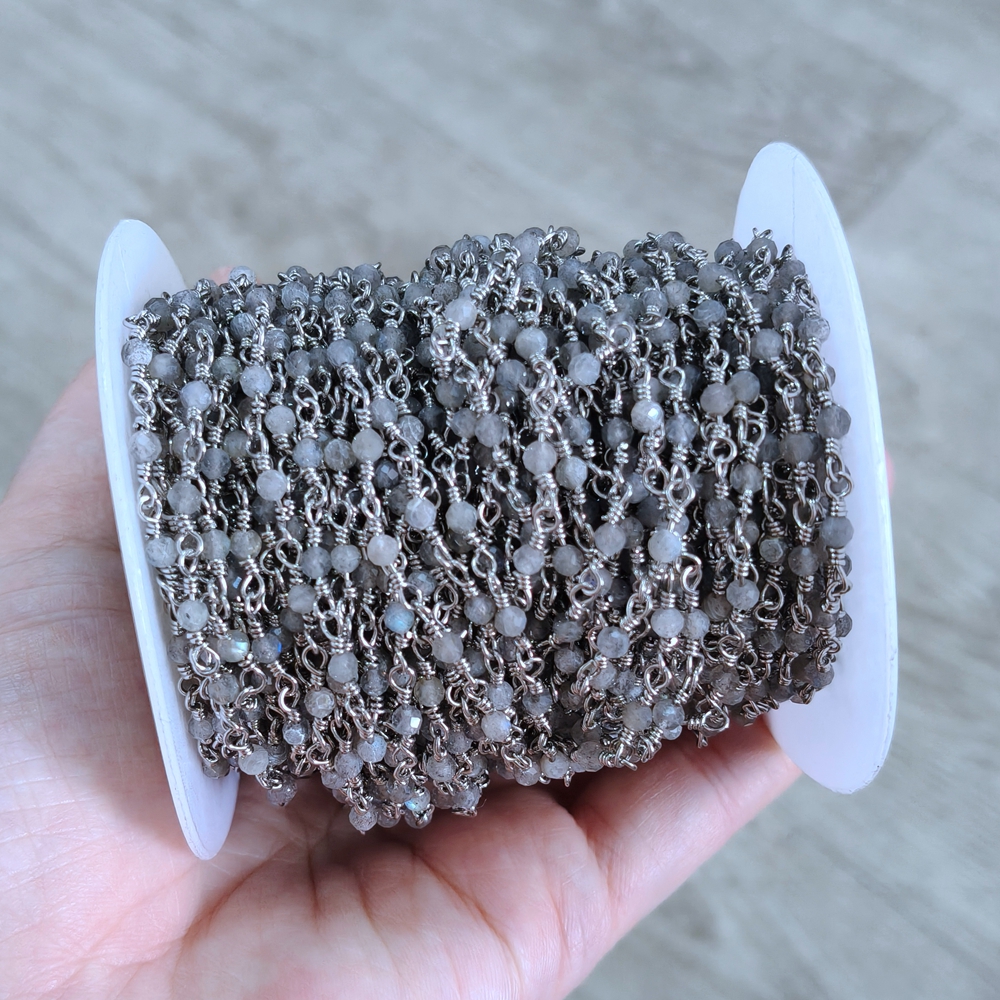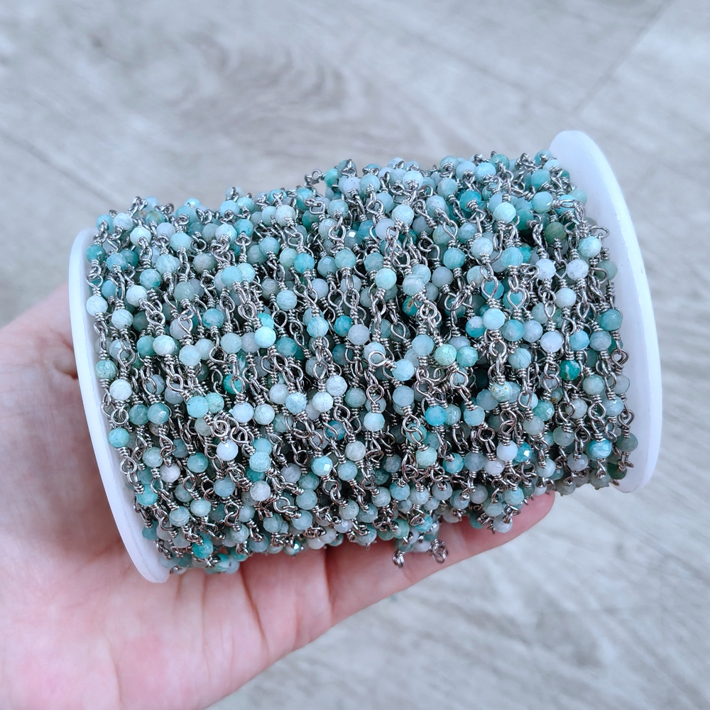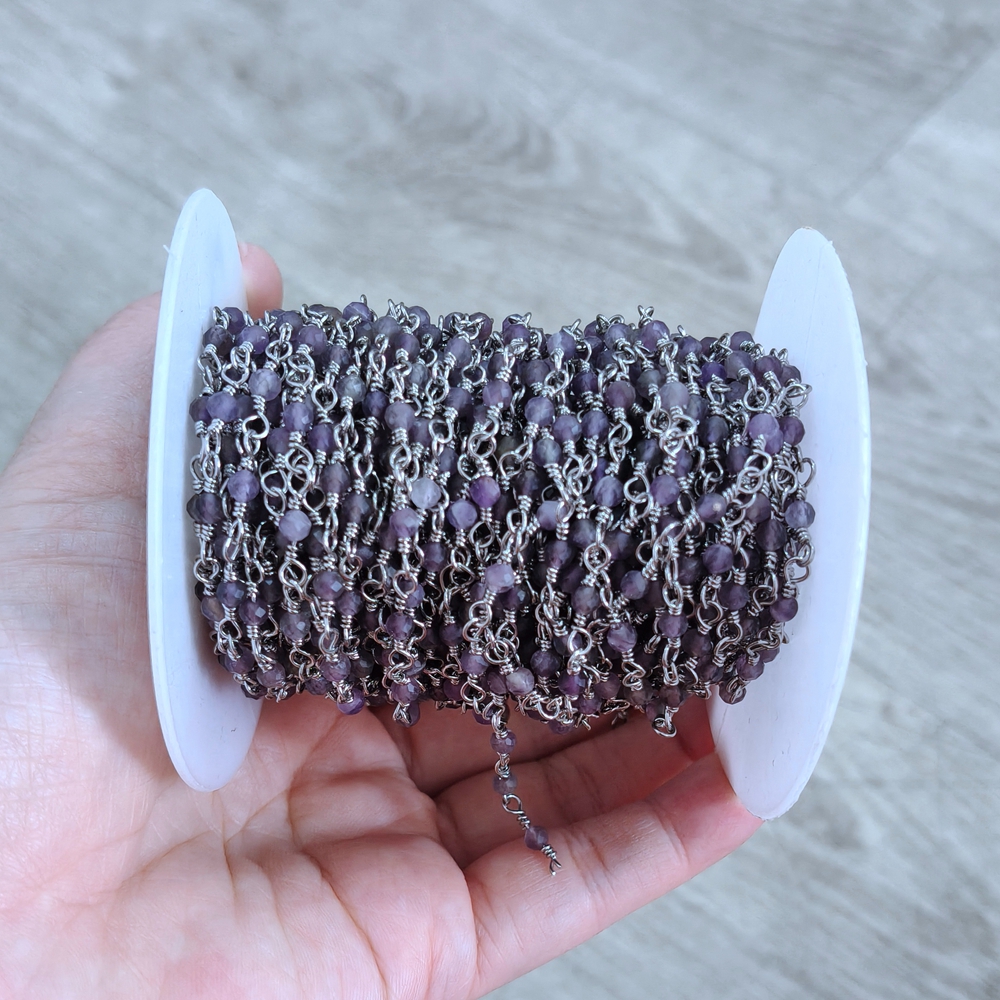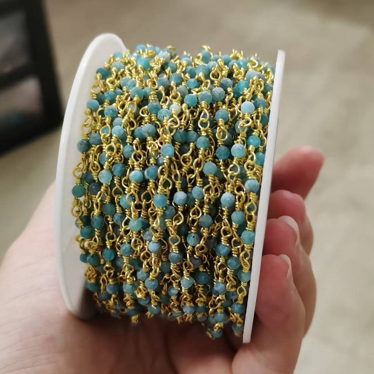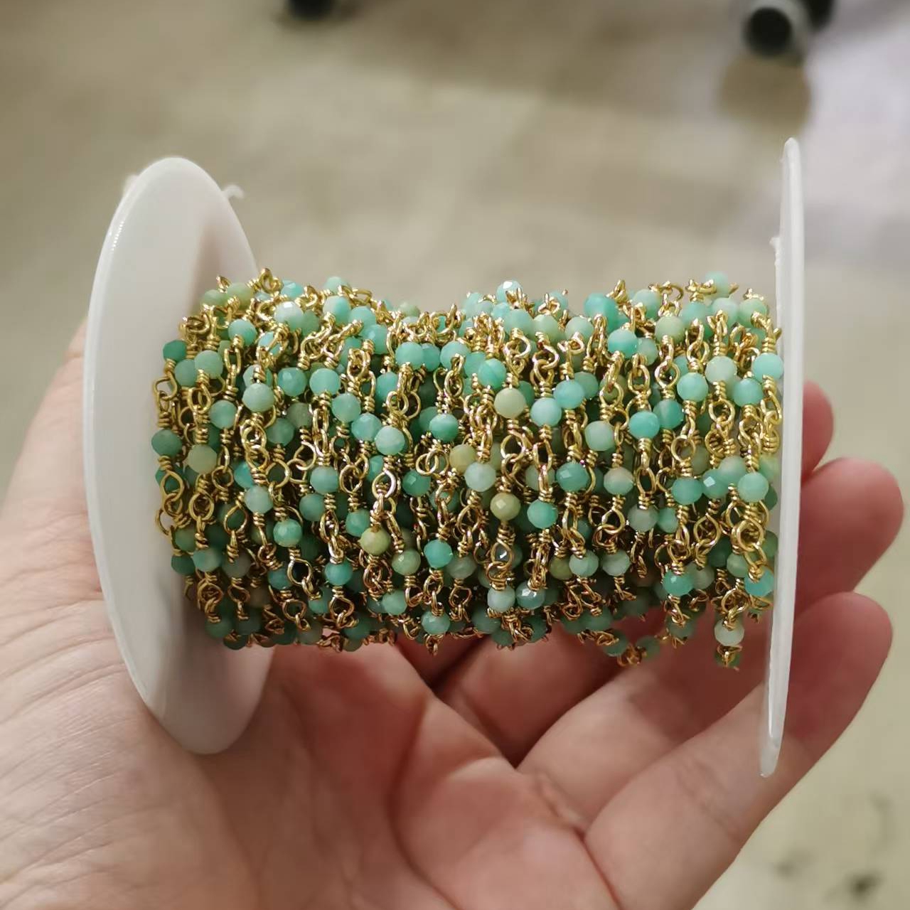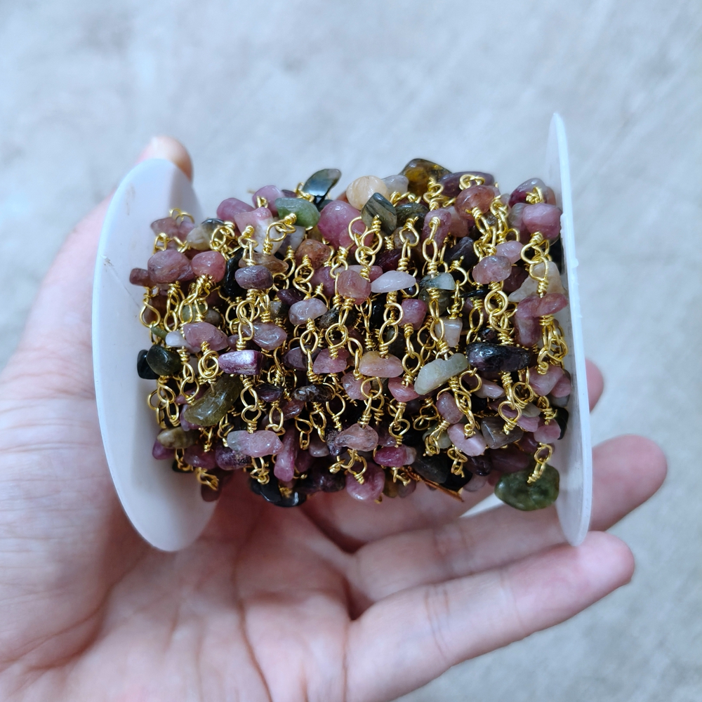 Top Selling Natural Gemstone Beaded Gold Plated Jewelry Making Round Shape Faceted Bead Rosary Chain DIY Necklace Jewelry Making