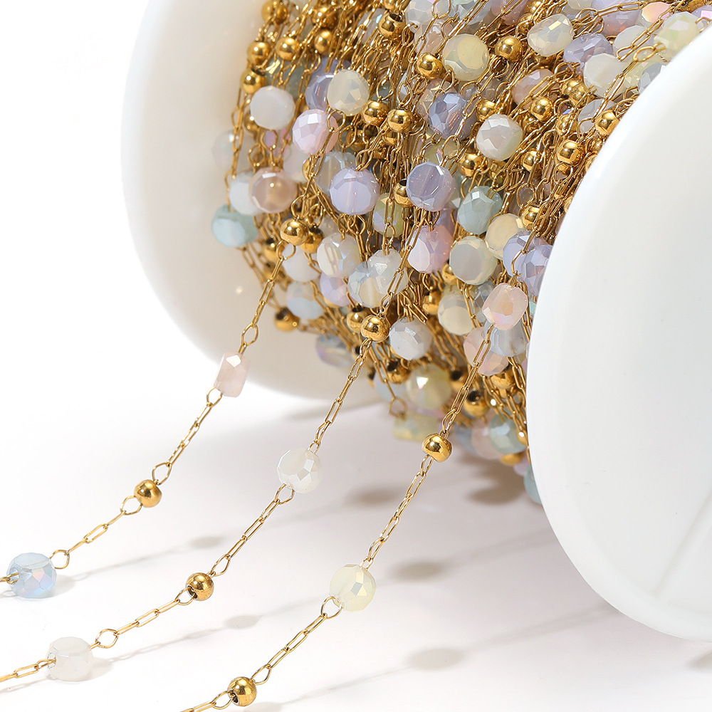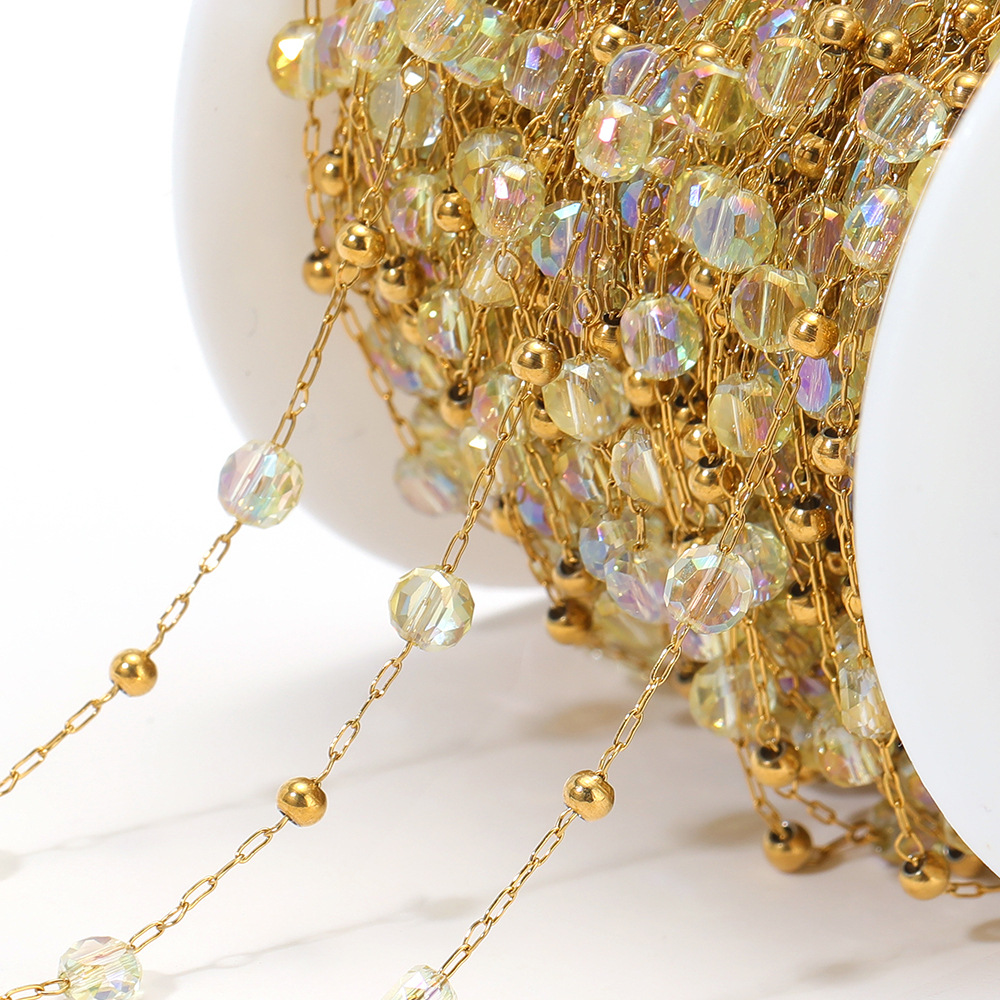 Waterproof Stainless Steel Crystal Beads 18k Gold Chains Bulk for DIY Jewelry Making Handcrafts Bracelet Necklace Findings